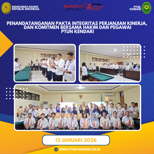 - Penandatanganan Pakta Integritas, Perjanjian Kinerja, Dan Komitmen Bersama Hakim Dan Pegawai Pengadilan Tata Usaha Negara Kendari