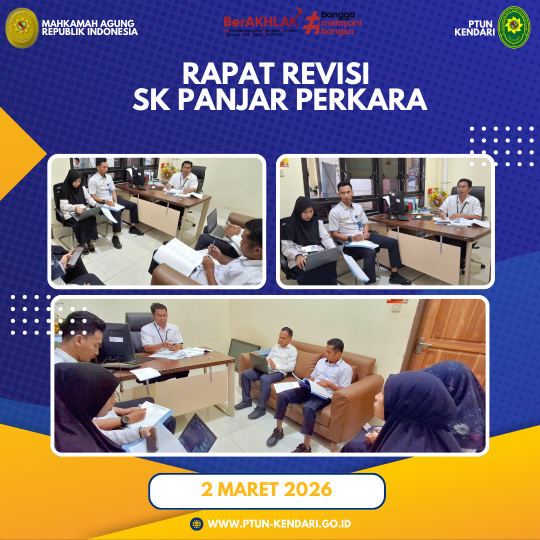 Pada hari Senin, tanggal 2 Maret 2026. Telah dilaksanakan Rapat Revisi SK Panjar Perkara. Dalam rapat ini dipimpin oleh Bapak Taufiq, S.H. (Panitera) dan diikuti oleh Panitera Muda Perkara, Panitera Pengganti, Jurusita Pengganti, dan staff bagian kepaniteraan muda perkara.