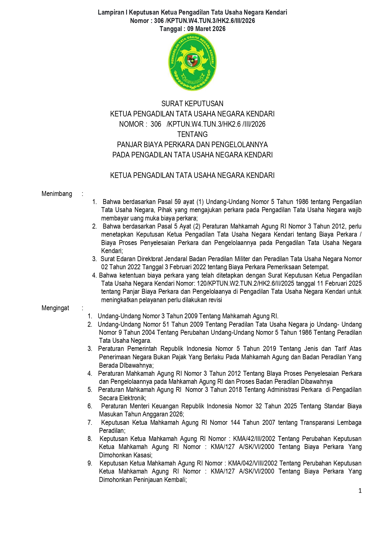 Informasi Pendaftaran Perkara Pengadilan Tata Usaha Negara Kendari dapat diakses oleh publik pada link berikut